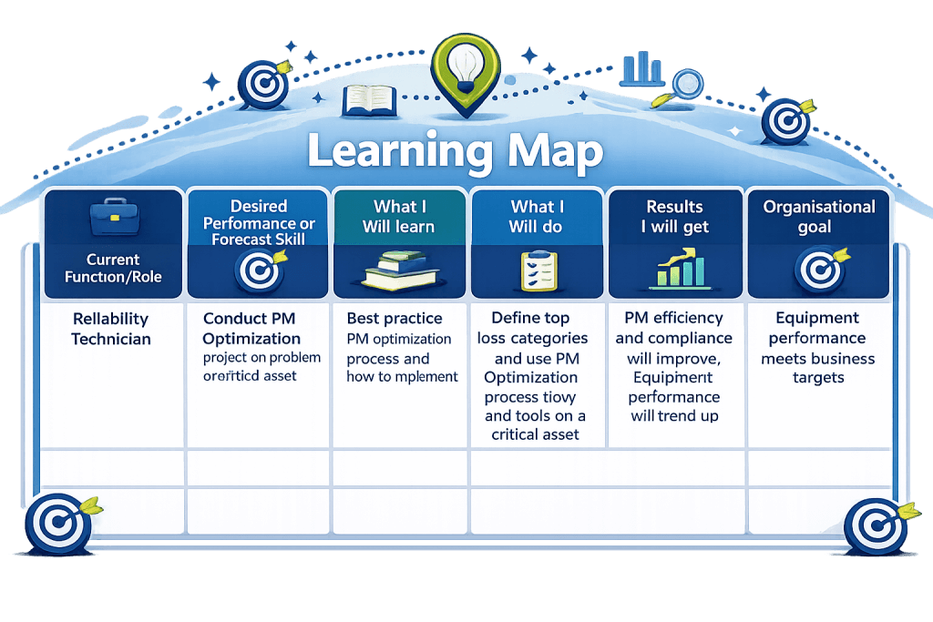 A Learning Impact Map is a simple tool used to identify if the training can achieve the desired results, prepare participants to learn and change behavior based on the training, and link the desired behavior with organizational performance and business goals.